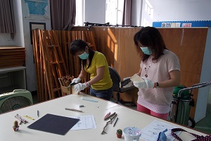 木材表面研磨 每個人正專注地裁雕自己喜愛的鉛筆樣式