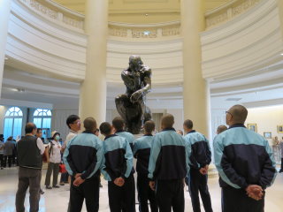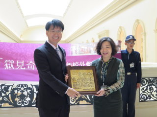 本次的「獄見奇蹟」校外活動,在數十名教職同仁的協力戒護下,讓49名學生能順利進入奇美博物館參觀,這是本校前所未有的創舉,也代表了歷史性的一刻!103年11月27日9時許,師生一行人抵達博物館大廳,便受到館方人員熱烈的歡迎。為感謝館方對本次活動的鼎力支持,本校也特別準備了自製的「獄見奇蹟」紀念陶板,贈與館方代表。