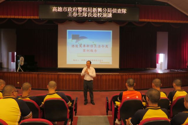 本校特別函邀具實務經驗之高雄市政府警察局新興分局偵查隊隊長王春生擔任酒駕宣導專題講座,以借重王隊長實務經驗之寶貴經驗與長才,於本(108)年6月11日(星期二)14時55分-16時40分假本校禮堂辦理酒駕專題宣導專題講座,以酒駕宣導為主軸,加強本校師生酒駕相關實務作業與內容,是日參與酒駕宣導之教職同仁66名及學生163名共計229人參與酒駕宣導專題演講。